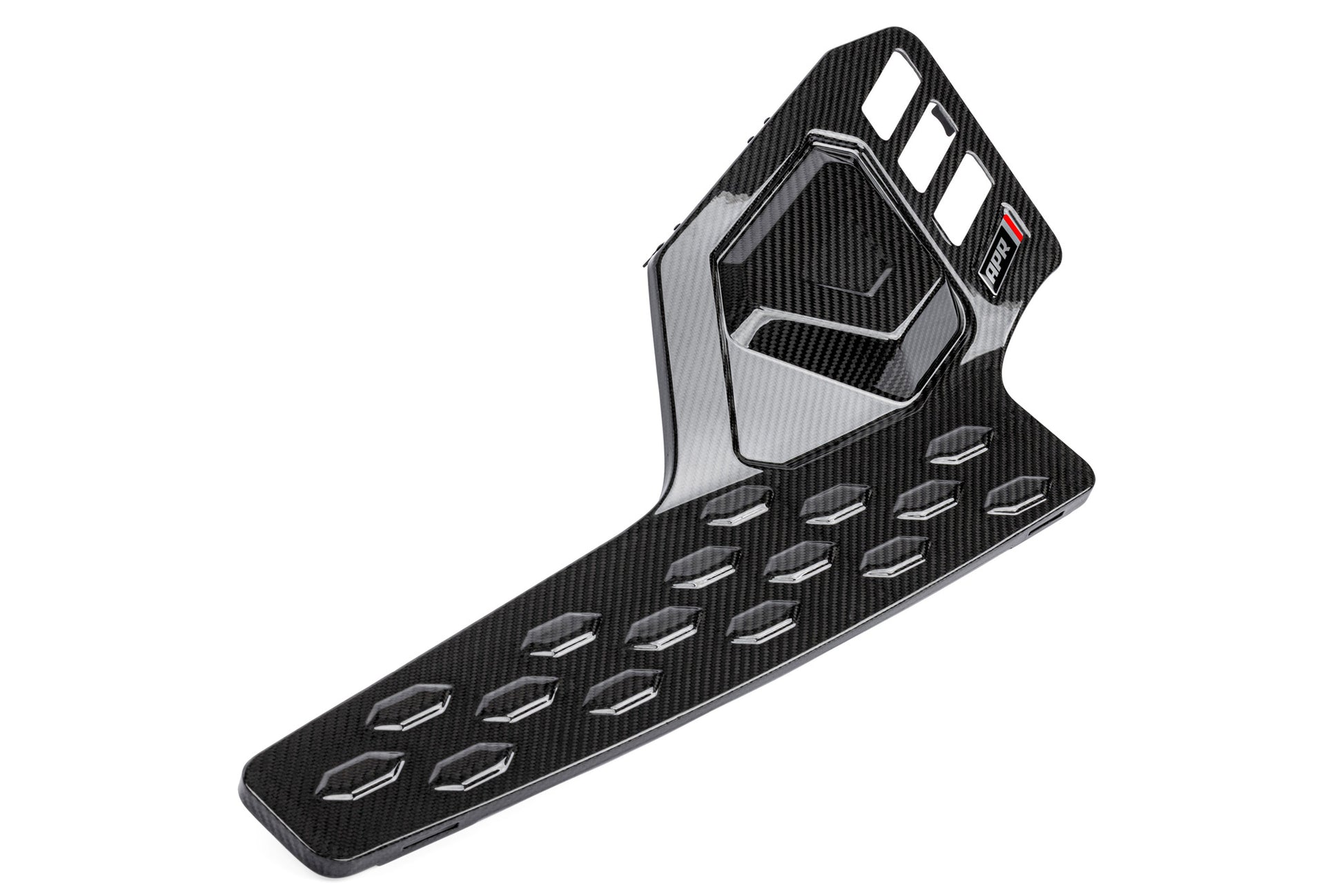 The APR Intake System is sold as an open system but can be configured as a closed system design by adding this cover. This cover is made from Carbon Fiber with a twill pattern and snaps into place without the need for any tools. Additional airflow paths allow the system to pull additional air on high power setups, while also allowing more turbocharger sound.