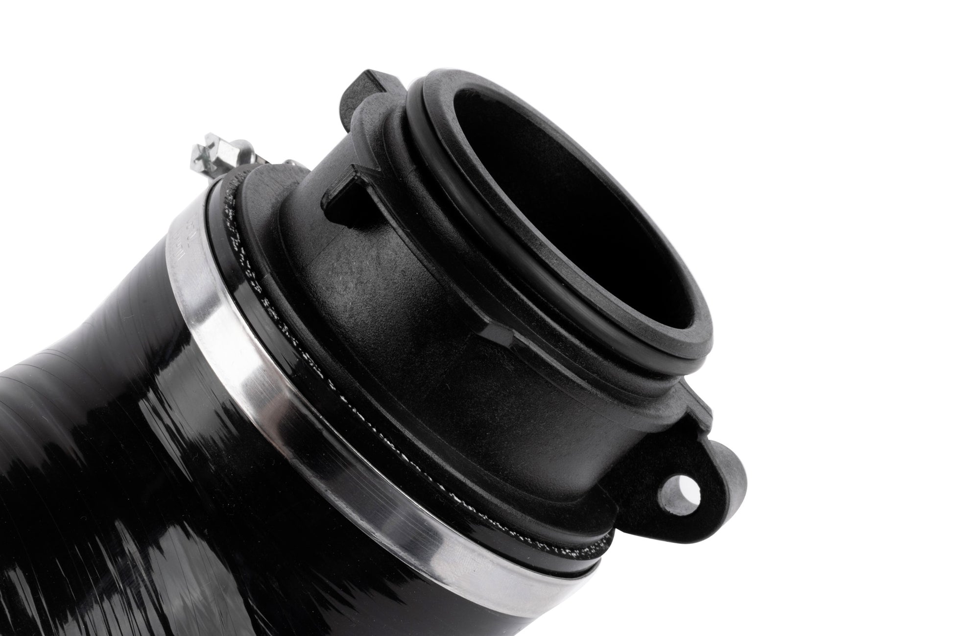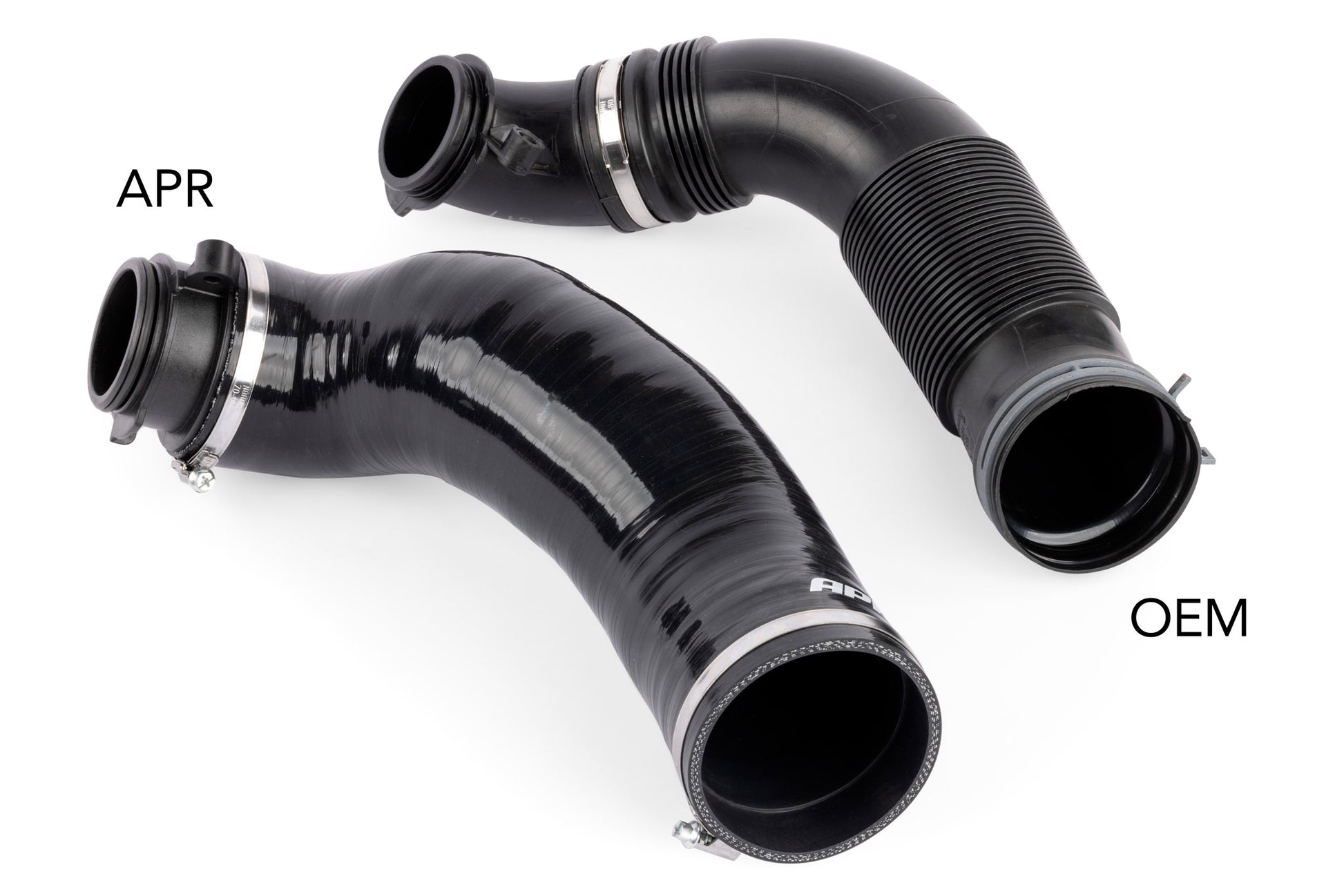 The APR Turbo Inlet System is a comprehensive upgrade to your factory or modified intake system. To maximize performance addressing the restrictive components between the airbox and turbocharger are a top priority. It's common to individually upgrade these components, but doing so is not ideal as it mean sacrificing overall design for the sake of compatibility. This is why the APR system is one complete upgrade from the turbocharger to the intake airbox. We were able to increase the diameter as large as possible with the best geometry from the turbo to the intake airbox to promote the maximum amount of flow with the lowest pressure drop. The system starts at 80mm and can expand up to 88mm for larger airbox systems. For any given size inlet there is a theoretical maximum flow limit, but in real world testing the actual results are typically around 90%. On the GTI we set out to achieve this limit and hit 90% of the ideal maximum with the APR turbo inlet! This means the turbo doesn't have to work as hard, which translates to lower temperature, and improved performance. This system is compatible with the factory intake airbox, and works perfectly with an APR intake filter for those who prefer a "stealth" OE airbox upgrade. It also pairs perfectly with our myriad of intake airbox only intake systems, such as the APR Carbon Fiber and PEX open systems. Of course, none of these systems compared to the performance potential of the complete APR intake system with modular covers, but the performance is the best you can expect without upgrading all 3 components in one design (turbo inlet elbow, turbo inlet pipe, and airbox). Every aspect of the system has been perfected for performance minded individuals. The hose is wire reinforced so there's no chance it will collapse under heavy load and heat. Since oils from the PCV will eventually work their way into the system, we line the hose with fluorosilicone ensure it's oil and fuel resistant. And lastly the turbo inlet adapter is removable, giving you the flexibility to grow with this system as you see fit!