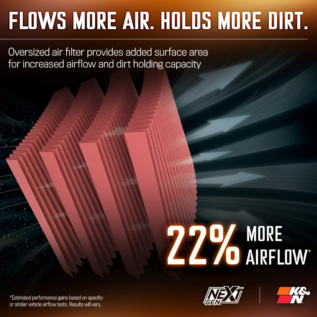 This K&N NextGen cold air intake system is engineered for Chevrolet Camaro SS V8 6.2L F/I. A high-density polyethylene (HDPE) rotationally molded tube helps increase the volume of airflow by 21.6% to your engine and provides an increase of 25.25 horsepower and 30.35 torque with no tune required.
